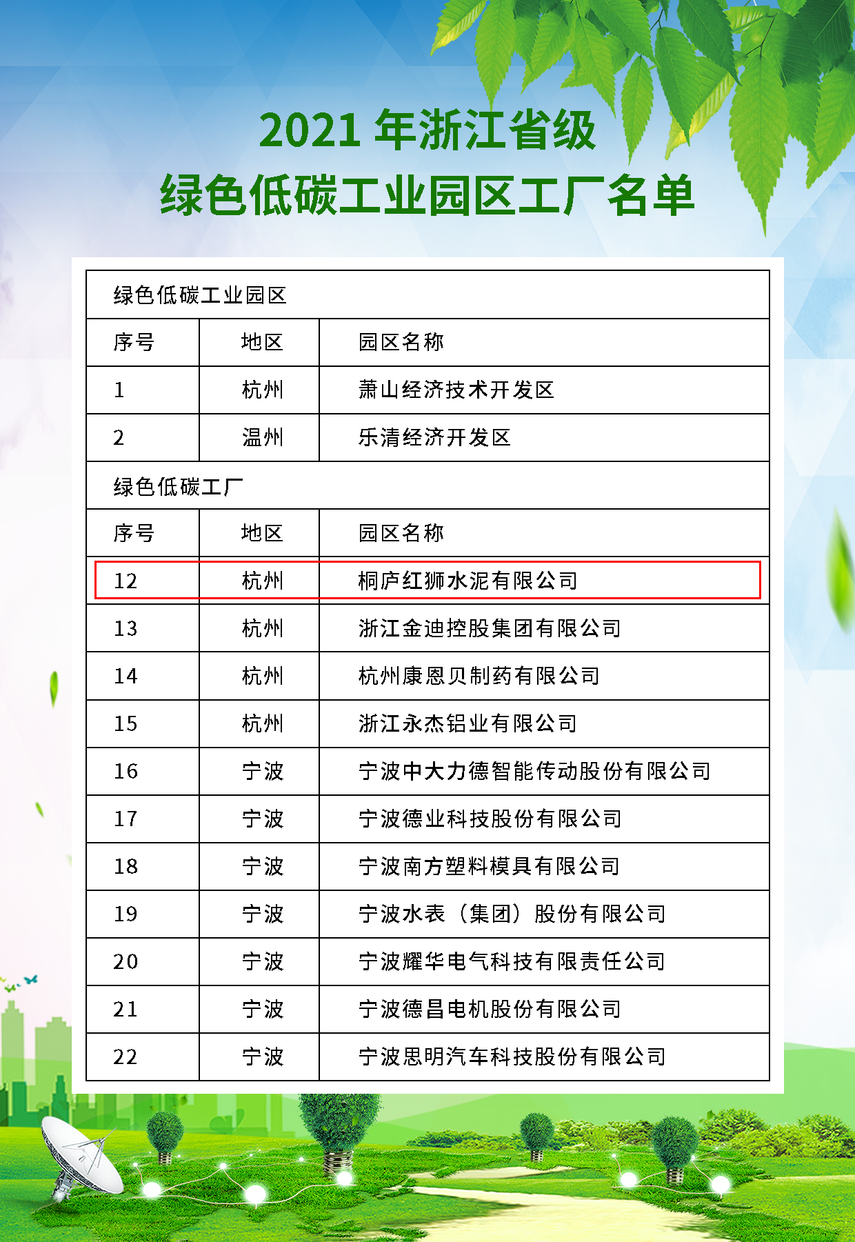 喜訊!桐廬紅獅獲評(píng)2021年浙江省級(jí)綠色低碳工廠
