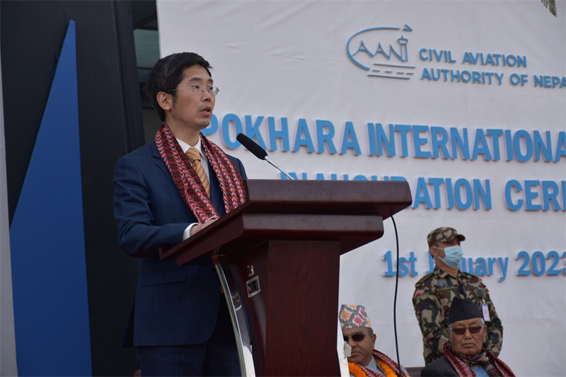 中國駐尼泊爾使館臨時代辦王欣在致辭中對博卡拉國際機(jī)場的順利投運(yùn)致以熱烈祝賀,表示衷心感謝普拉昌達(dá)總理和尼政府各部門多年來對該項目給予的積極支持和大力配合,感謝項目組中尼雙方全體工程技術(shù)人員的辛勤付出和卓越貢獻(xiàn)。他表示,新機(jī)場體現(xiàn)了中國工程質(zhì)量,象征著尼泊爾國家榮譽(yù),成為中尼共建“一帶一路”的一張亮麗名片。新機(jī)場不僅是便利尼泊爾與中國和世界各國人員往來的航空樞紐,也是見證中尼患難真情和友好互助的友誼工程,成為構(gòu)建中尼命運(yùn)共同體、攜手實現(xiàn)共同發(fā)展繁榮的生動實踐和有力見證。