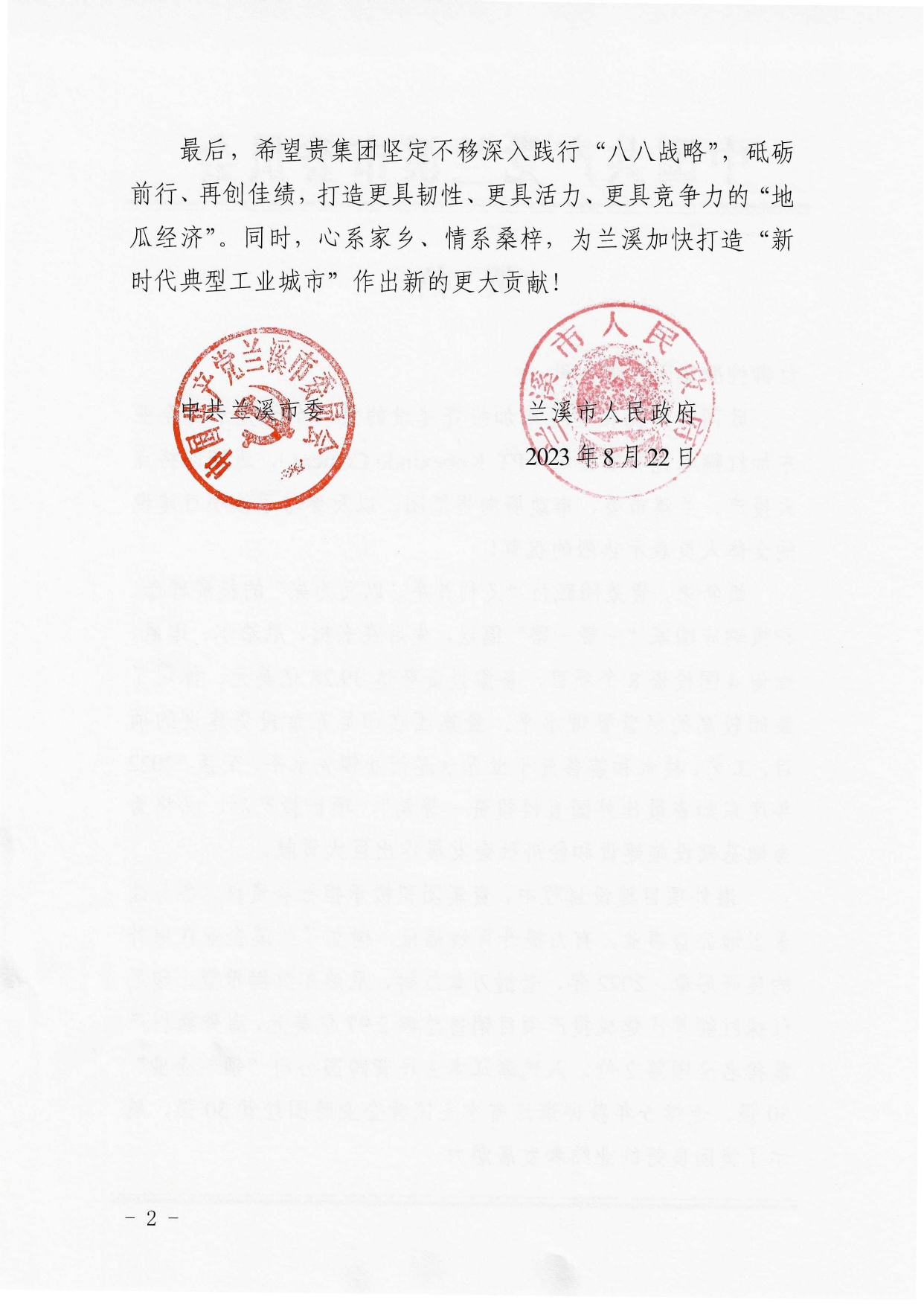 集團總部所在地蘭溪市委市政府特地發(fā)來賀信,稱贊紅獅集團“義利并舉、以義為先”的投資理念,積極承擔社會責任,參與改善當地公益事業(yè),有力提升百姓福祉,樹立了蘭溪企業(yè)在海外的良好形象。同時鼓勵集團堅定不移深入踐行“八八戰(zhàn)略”,打造更具韌性、更具活力、更具競爭力的“地瓜經濟”,心系家鄉(xiāng)、情系桑梓,為蘭溪加快打造“新時代典型工業(yè)城市”作出新的更大貢獻!