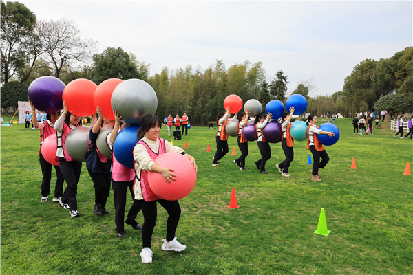 有妳才精彩”為主題,得到了全體女員工的熱烈響應(yīng)?;顒娱_始前,教練先帶領(lǐng)女員工們進(jìn)行熱身律動和激情節(jié)拍,通過簡單趣味的運(yùn)動,讓大家愉悅身心,充分熱身,為團(tuán)隊趣味比拼做好準(zhǔn)備。趣味競技活動分為幸運(yùn)彩球、筑塔、旋風(fēng)跑、毛毛蟲競速等四個比賽項目,教練把女員工分成8個小隊進(jìn)行比賽。