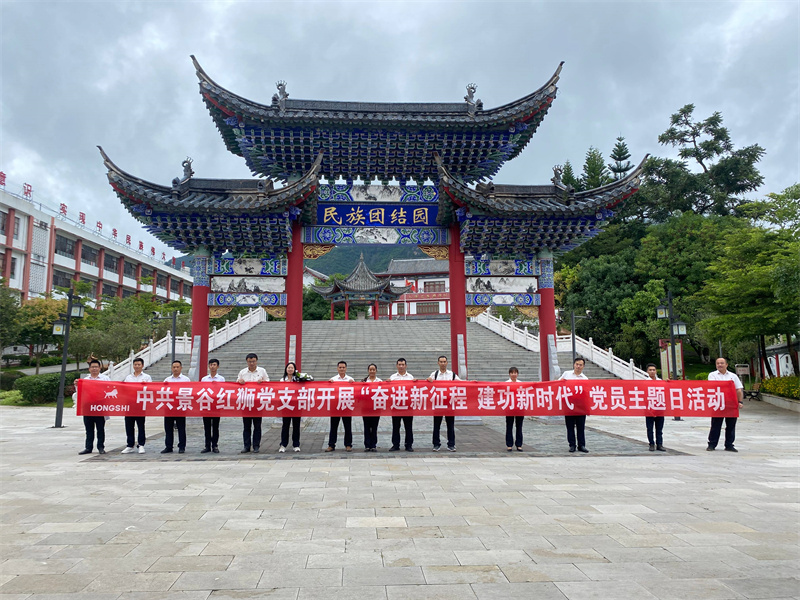 景谷紅獅全體黨員在“民族團(tuán)結(jié)園”前合影
