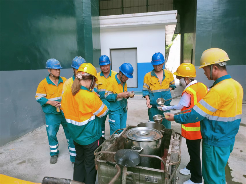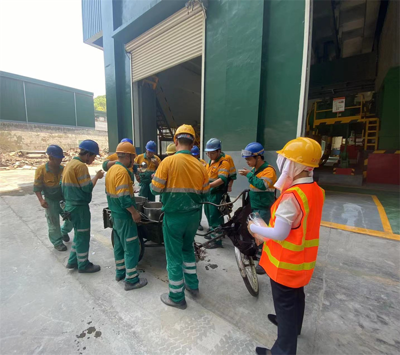 “大家辛苦了,天氣熱,要注意身體,快來喝冰鎮(zhèn)綠豆湯......”一句句關(guān)懷的話語和親切的慰問,讓奮戰(zhàn)在一線的員工們很是感動,也使他們切實的感受到了公司對他們的真情關(guān)愛,冷飲是涼的,但是暖了大家的心,每位員工的臉上都洋溢著幸福的笑容。