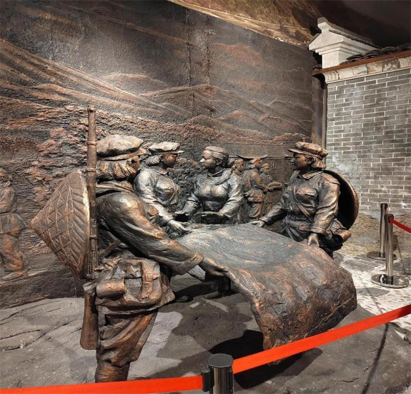活動當(dāng)天,大家心懷敬意地踏上了此次學(xué)習(xí)之旅。走進大門,映入眼簾的就是廣場中間半條被子雕塑,時隔八十多年,趟過歷史長河,三位女紅軍與村民徐解秀仍在推讓那唯一的棉被,廣場上冰冷的雕塑在太陽底下散發(fā)著溫暖的氣息,那是人心的溫暖。