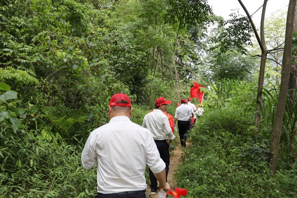 介紹完畢后,黨員干部們滿懷著對中國紅軍的崇敬之情,從上龍鄉(xiāng)甫茶屯出發(fā),沿著革命先烈奮斗的足跡前行。沿途山路狹隘崎嶇,山高林密,但大家不畏艱苦,在跋涉山路中重溫激情燃燒的歲月,感受革命時期的艱難,體驗著革命者那種置身險境英勇拼搏的韌勁,切身體會到革命成功的艱辛和來之不易,從而更加堅定了作為一名黨員干部的信念和決心。