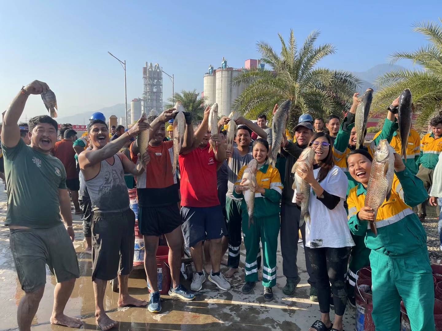 經(jīng)過兩個(gè)小時(shí)的激烈比拼后,捕魚比賽落下帷幕。裁判組開始為每個(gè)隊(duì)伍捕到的“戰(zhàn)利品”稱重,稱重現(xiàn)場(chǎng)亦是歡呼不斷,大家個(gè)個(gè)臉上都洋溢著開心的笑容。最終,經(jīng)過稱重,12支隊(duì)伍共捕到塘魚1507公斤,制成隊(duì)獲得團(tuán)體總重量冠軍,捕到魚175公斤,礦山隊(duì)捕到5.3公斤“魚王”,獲得單條魚重量冠軍,燒成隊(duì),制成隊(duì),生產(chǎn)調(diào)度1隊(duì),生產(chǎn)調(diào)度2隊(duì)分別獲得單條魚重量第二名至第五名。